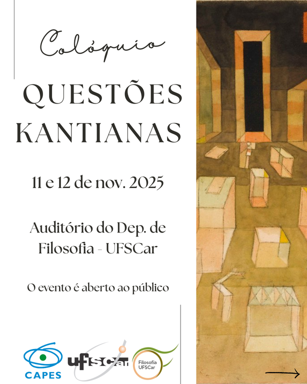 O PPGFil/UFSCar realiza, nos dias 11 e 12 de novembro de 2025, o Colóquio “Questões Kantianas”, evento aberto ao público que reunirá pesquisadoras e pesquisadores de diferentes instituições para discutir temas centrais da filosofia de Immanuel Kant.