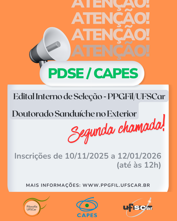 A Universidade Federal de São Carlos (UFSCar), campus São Carlos, por intermédio da Pró-Reitoria de Pós-Graduação (ProPG) e da Coordenadoria de Internacionalização (CInter), torna público o Edital Interno de Seleção para concessão de 1 (uma) bolsa de Doutorado Sanduíche no Exterior, em conformidade com o Edital nº 2/2025/CInter/ProPG (Segunda Chamada) do Programa Institucional de Doutorado Sanduíche no Exterior (PDSE/CAPES) e com o Plano Estratégico de Internacionalização da UFSCar.